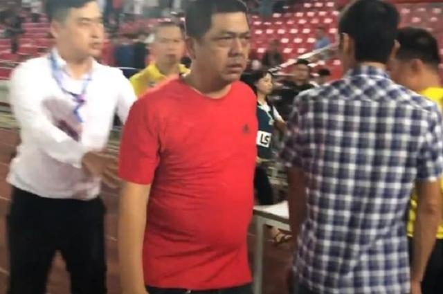 Fan tersebut sempar menarik Huang Ngoc Ha sebelum meludahi wajah sang pengadil pertandingan yang sudah berlisensi FIFA tersebut.