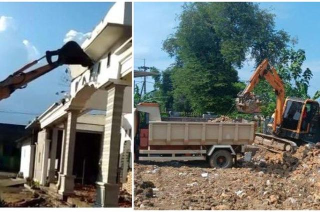 Suaib pun mengerahkan tenaga manusia dan alat berat untuk merobohkan rumah mewah tersebut.