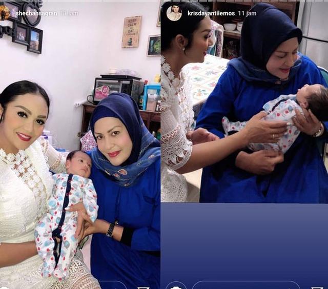 "Silaturahmi sebelum lebaran idul adha dengan keluarga mama @shechahsagran. Sekarang udah tambah komplit jadi Vovo dengan adanya anggota keluarga baru baby ezza putra pertama @thelifeofsyei and erick," tulis KD pada bagian caption.