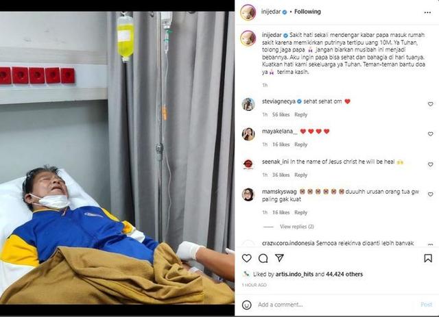 "Sakit hati sekali mendengar kabar papa masuk rumah sakit karena memikirkan putrinya tertipu uang Rp 10 M," tulis Jedar di akun Instagramnya.