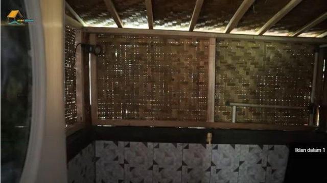 Kamar mandinya begitu sederhana, temboknya dari anyaman bambu.