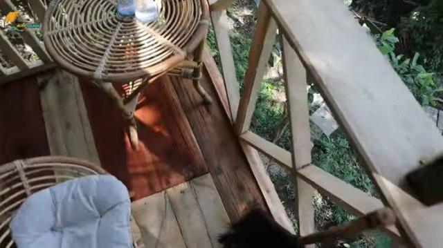 Tangga untuk naik ke atas juga terlihat dari kayu yang sederhana.
