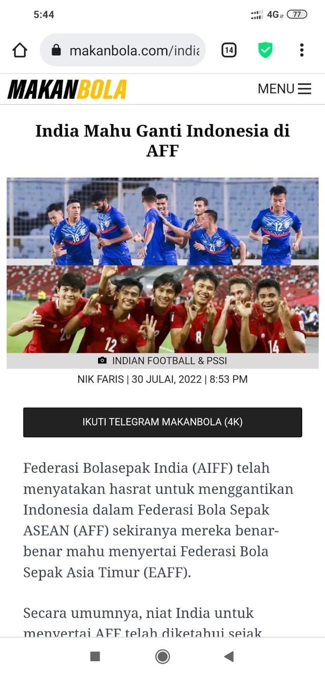 "Kabar kepindahan India ke AFF menimbulkan berbagai spekulasi karena dinilai mampu menggantikan posisi Indonesia yang ingin masuk ke EAFF," tulis Makan Bola.